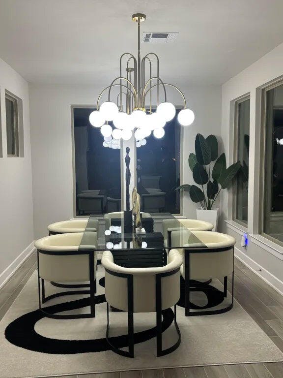 - Multiple Pendants : For long rectangular tables, two or three smaller pendants spaced evenly above the table create a balanced look.